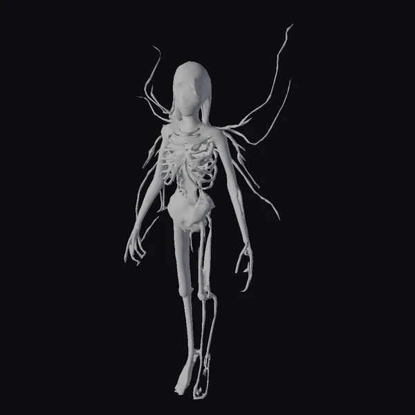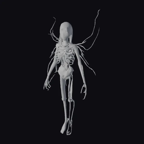 Floating dynamically against a neutral backdrop, the bioluminescent blue spirit stands tall, its skeletal frame and internal organs visible through its glowing, translucent skin. The model’s pose exudes an air of mystique, with tendrils extending from its body, suggesting an ethereal connection to the unknown. The blue hues range from deep indigo to radiant cyan, capturing the imagination and inviting exploration. Crafted with precision, this model is perfect for projects requiring a touch of sci-fi mystique, suitable for games, animation, VR/AR experiences, and design projects seeking to enchant audiences.