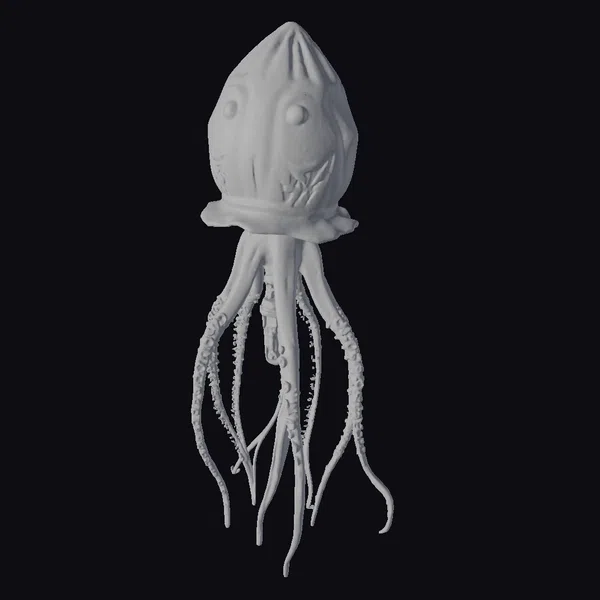 In a majestic pose, the bioluminescent deep-sea creature showcases its intricate details. The crystalline bell, adorned with glowing spots, pulsates with a soft, neon light. Eight undulating tentacles, varying in length, trail behind, each covered in tiny, shimmering suckers. The model’s translucent body gradates through hues of purple, blue, and green, giving it an iridescent sheen. As light dances across its form, the creature appears almost alive. Ideal for use in games, 3D print projects, VR/AR experiences, animations, or designs requiring a touch of oceanic mystique.