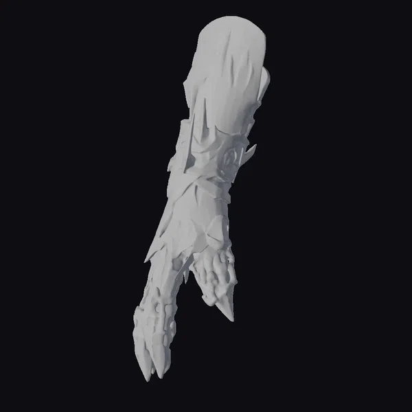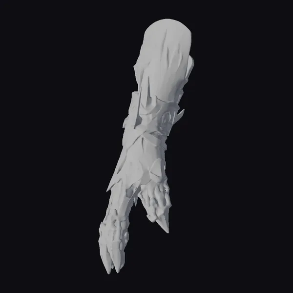 Positioned dynamically, the gauntlet’s intricate design showcases a blend of industrial and alien aesthetics. The base material appears as brushed steel, while the glowing green spots and organic resin components add a surreal, high-tech feel. The segmented structure allows for flexibility, suggesting a functional design for a futuristic warrior. Ideal for sci-fi projects, gaming environments, or conceptual art, this piece injects a dose of advanced technology and danger. Its unique fusion of materials and lighting effects makes it perfect for animations, VR/AR experiences, or 3D printing.