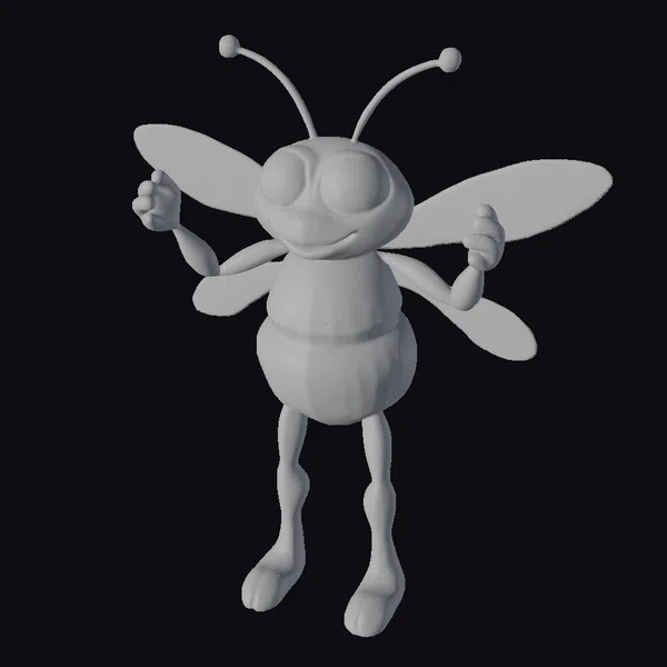 Standing on two legs, this delightful anthropomorphic honey bee exudes joy with its wide smile and raised hands. The model’s body features a detailed, segmented texture in shades of yellow and black, with semi-transparent wings that catch the light. Its large, shining eyes are full of warmth, inviting interaction. The bee’s human-like limbs are proportioned to match its body, allowing for a range of poses. Ideal for projects needing a friendly, approachable character, this model is suited for animations, games, or as a decorative piece. Its cartoon style ensures broad appeal and versatility.