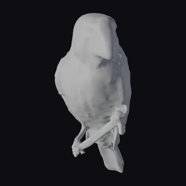 The black bird sits poised on a branch, its body angled slightly to one side as if caught in a moment of contemplation. The intricate details of its feathers are meticulously rendered, with a subtle sheen that suggests the natural oils found in real bird plumage. The branch, held firmly in the bird’s claws, adds a sense of realism and texture to the scene. The bird’s facial features are finely detailed, with a large white beak that shows a delicate pinkish line along its edges, and dark, bead-like eyes that seem to sparkle with a hint of intelligence. This model would be perfect for projects requiring a realistic avian presence, such as wildlife documentaries, educational materials, or even decorative elements in architectural visualizations.