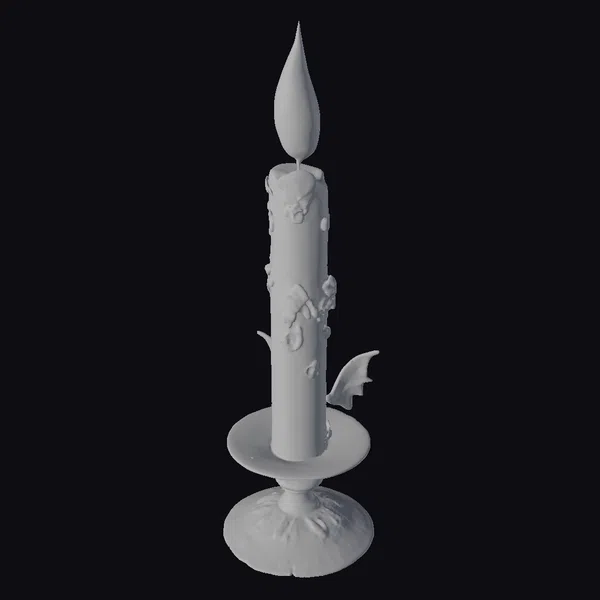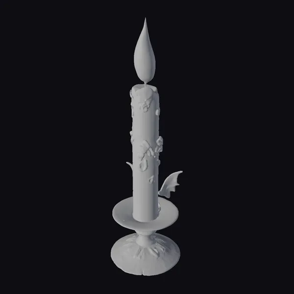 Standing tall, the black candle’s wax appears to be melting in an eternal dance, as the vibrant blue flame casts an ethereal glow. The intricate bat decorations that wrap around the candle’s body seem to be emerging from the shadows, adding a touch of macabre whimsy. Set atop a sturdy metal candlestick, this hauntingly beautiful piece is perfect for those who dare to venture into the realm of dark design. Ideal for use in games, 3D printing, VR/AR experiences, animation, and design projects that require a dash of the unknown.