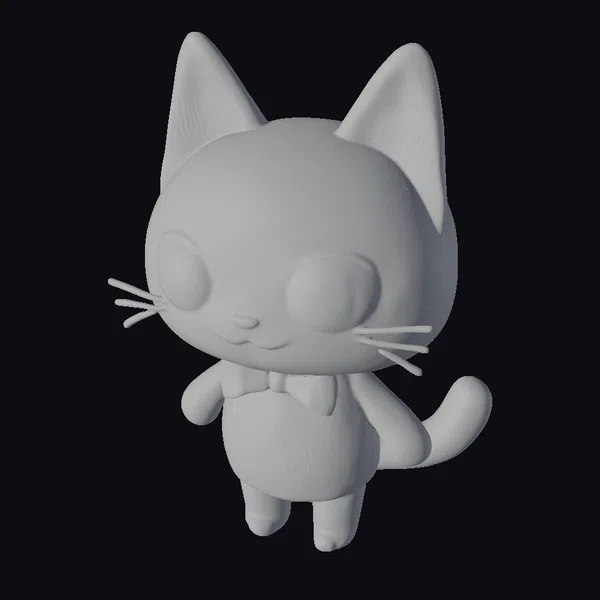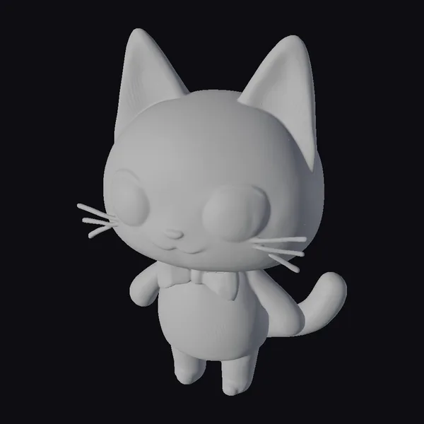 Detailed with precision, this cartoon cat stands out with its oversized, shiny eyes and adorable facial features. The model boasts a smooth black body, complemented by a light blue bowtie that adds a hint of sophistication. Its ears, painted with a soft pink hue, peek out from the top of its head, adding a playful touch. The cat’s body is rounded and endearing, perfect for projects requiring a friendly feline character. Ideal for use in animations, games, or as a decorative piece, this model brings a lighthearted vibe to any scene. Its stylized yet detailed design makes it versatile for various applications, from educational materials to digital art projects.