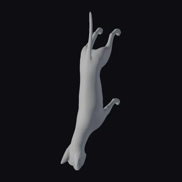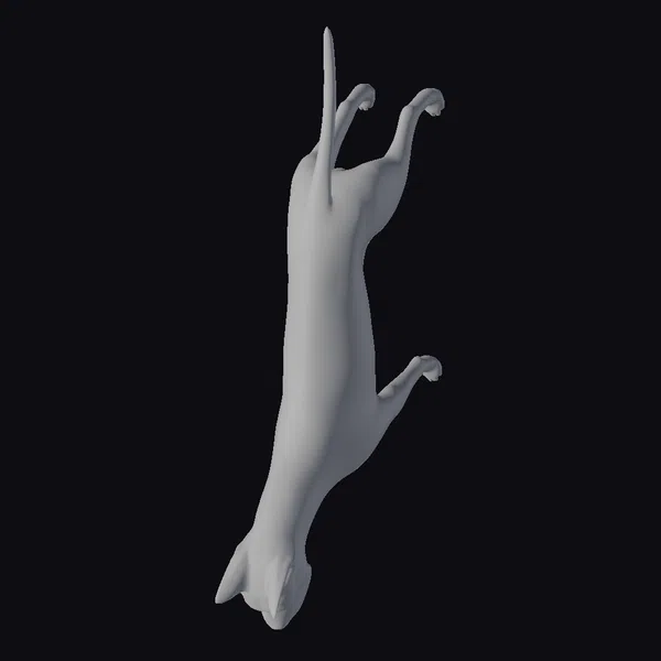 In a stunning display of digital artistry, this 3D model of a black cat captures the essence of feline agility and playfulness. The cat’s body is stretched out in a majestic arc, with its legs extended in a natural, fluid motion, as if caught in the split second of a joyful leap. The sleek, black fur is meticulously detailed, with subtle shading that accentuates the cat’s muscular structure and the softness of its coat. The eyes, though not the focal point, are delicately rendered, adding a touch of life to the overall model. This model is perfect for animators and designers looking to add a touch of realism and whimsy to their projects, whether it’s for animation, virtual reality, or 3D printing. The model’s intricate details and lifelike pose make it an excellent choice for anyone aiming to create engaging, high-quality content.