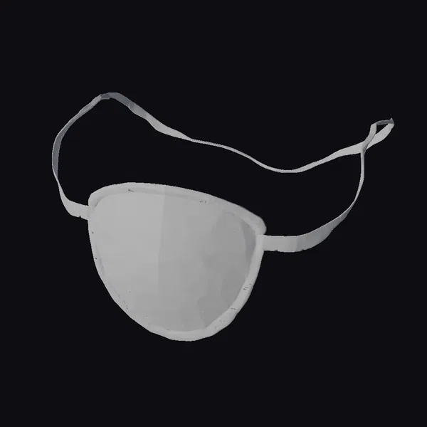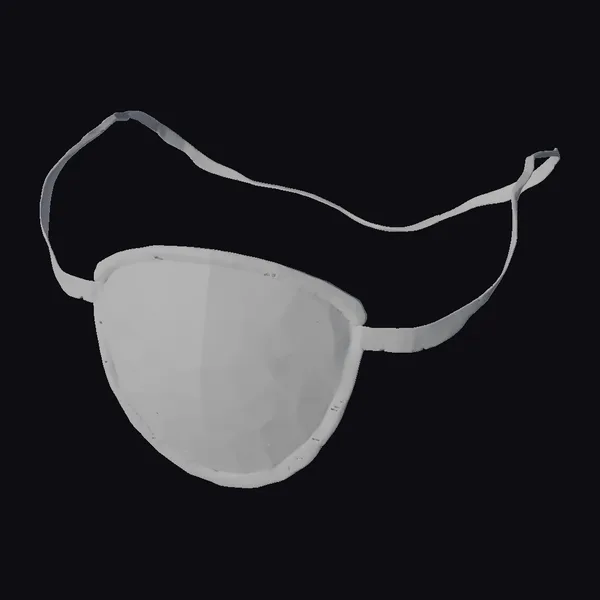 Positioned dynamically against a clean white backdrop, the eye patch is showcased in a slightly angled pose, highlighting its curved design and the texture of the material. The matte black surface seems to absorb light, giving it a sleek, modern appearance. The strap, adjustable and flexible, suggests versatility and practicality. This eye patch could be a fantastic addition to a variety of projects: game characters, especially those with a pirate or steampunk theme, fashion designs looking for an edgy touch, or even architectural visualizations aiming for a unique interior design element. Its high level of detail, from the texture of the leather to the mechanism of the strap, makes it suitable for close-up shots or as a prop in detailed scenes.