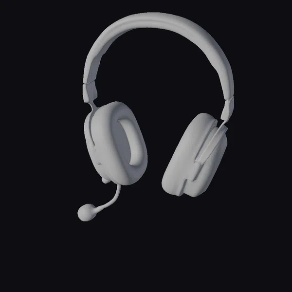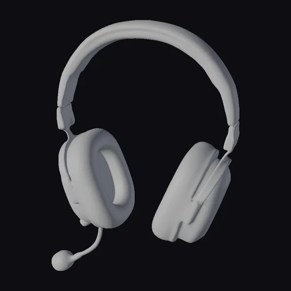 Positioned against a clean white backdrop, the headset’s contours are showcased in high definition. The ear cups, adorned with a subtle texture, seamlessly blend with the smooth, matte black finish of the headband. A thin, adjustable microphone protrudes from the left side, its spherical tip pointing downwards. The right ear cup appears slightly angled, as if inviting you to slip it on. The overall design exudes a sense of professional gaming gear. This model would be perfect for 3D environments, animations, or video game designs where realistic peripherals are needed.