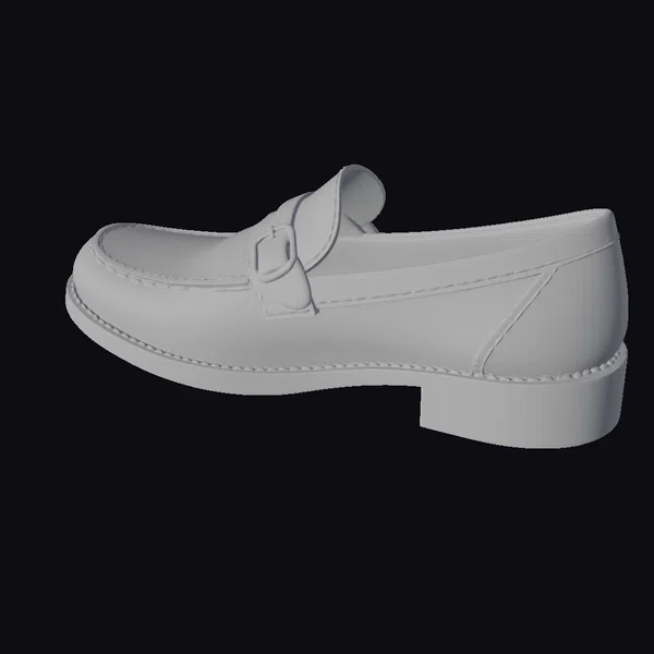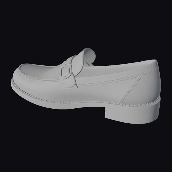 Crafted with meticulous attention to detail, this black leather loafer boasts a luxurious aesthetic that’s perfect for dressing up or adding a touch of elegance to a casual outfit. The shoe’s upper features a smooth, high-gloss finish, while the silver-toned buckle and strap add a touch of sophistication. A series of small stars adorn the toe cap, injecting a hint of whimsy into the design. With its sturdy sole and comfortable-looking silhouette, this loafer is perfect for use in games, 3D environments, or as a reference for designers and artists. Its realistic proportions and detailed textures make it an excellent choice for anyone seeking a high-quality shoe model.