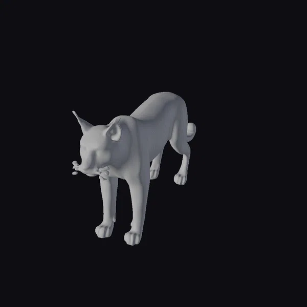 In a powerful, crouched stance, this black lynx with white spots exudes a sense of readiness, as if about to spring into action. The model’s fur is meticulously detailed, with a realistic texture that showcases the softness of its coat and the sharpness of its claws. The white spots on its gray fur are evenly distributed, adding a touch of elegance to its wild appearance. The lynx’s yellow eyes are piercing, and its short, stubby tail is characteristically fluffy at the end. This model is perfect for use in game development, animation projects, or as a detailed addition to 3D environments, offering a high level of realism and detail that will enhance any scene.
