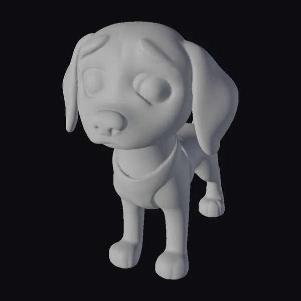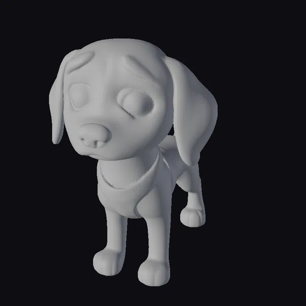 Detailed with precision, this charming black puppy stands poised, its large, expressive eyes seeming to sparkle with curiosity. The puppy’s fur is rendered in smooth, cartoonish detail, while its orange harness provides a delightful contrast. The model showcases a high level of detail, from the soft folds of the puppy’s ears to the texture of its paws. Ideal for projects requiring a lovable, animated pet, this model is suited for animations, games, and virtual reality experiences where a touch of warmth and personality is needed.