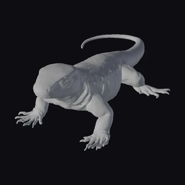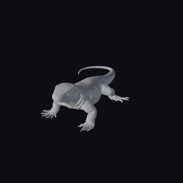 Detailed with precision, this lizard’s pose showcases its powerful limbs and long, tapering tail, set against a stark white background that accentuates its dark, mottled scales. The texture of its skin, from the rough patches on its back to the smoother areas on its underbelly, adds depth to its realistic appearance. Ideal for projects requiring a touch of the wild, this model can bring authenticity to scenes in games, animations, or any design work needing a realistic reptile. Its detailed features, from the curvature of its claws to the subtle shading on its face, make it a versatile asset for creators.