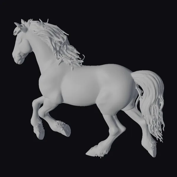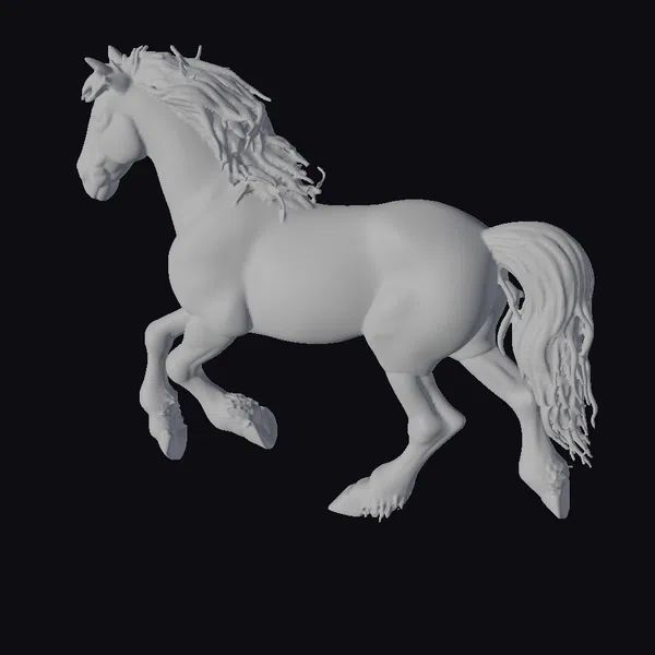 In a stunning display of equine beauty, this black stallion 3D model captures the essence of power and elegance. The horse is sculpted in a dynamic mid-stride pose, highlighting its muscular physique and the fluid motion of its legs. The model’s shiny coat reflects light, adding to its realistic appearance. The mane and tail are meticulously detailed, with each strand individually sculpted to create a lifelike flow. This level of detail makes the model perfect for use in games, 3D printing, VR/AR experiences, animation, and design projects where realism is paramount.