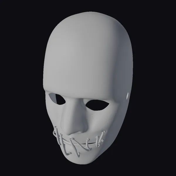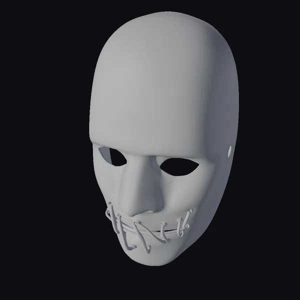 Crafted with meticulous attention to detail, this black face mask presents a striking yet unsettling visage. The smooth, matte finish of the mask contrasts sharply with the stark, white sutures that crisscross the mouth area, evoking a sense of foreboding and mystery. The empty eye sockets seem to draw the viewer in, inviting speculation about the stories this mask could tell. The mask’s simplicity belies its potential to transform its wearer into a figure of intrigue or fear. Ideal for use in film, theater, or as a collectible, this mask’s versatility is only limited by the imagination. Whether used to create a compelling character in a game, to add a touch of the macabre to a room, or as a prop in a virtual reality experience, this mask is sure to leave a lasting impression.