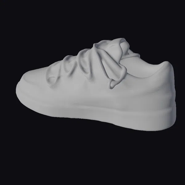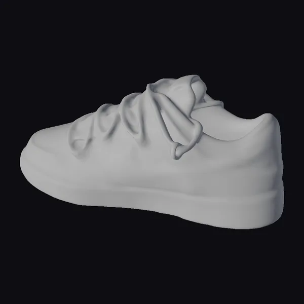 Positioned at a dynamic angle, the sneaker’s detailed design takes center stage. The black and white color scheme is accented by a vibrant graffiti tag that wraps around the heel, adding a pop of personality to the shoe’s design. White laces thread through matching eyelets, while the sole’s slight wear adds a touch of realism. Textures are crisp, with clear definitions between the shoe’s various components. The sneaker’s design makes it perfect for use in games, 3D animations, or architectural visualizations where a realistic shoe model is needed. Designers and artists can also use this model as a starting point for their own creations.