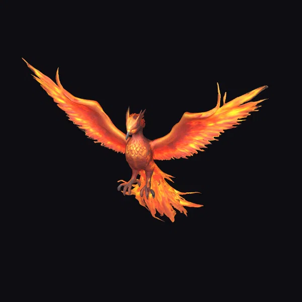 In a stunning display of mythical grandeur, this phoenix is frozen in a dynamic pose, wings outstretched and feathers aflame. The intricate textures of its plumage shimmer with a mesmerizing blend of golden hues and fiery oranges, gradating into deep crimson towards the wingtips. As the phoenix soars through the skies, its wings beat powerfully, leaving trails of glittering sparks in its wake. The level of detail is exceptional, from the delicate patterns on its feathers to the fierce intensity of its gaze. This model is perfect for use in games, animation projects, or as a striking visual element in design and art applications.