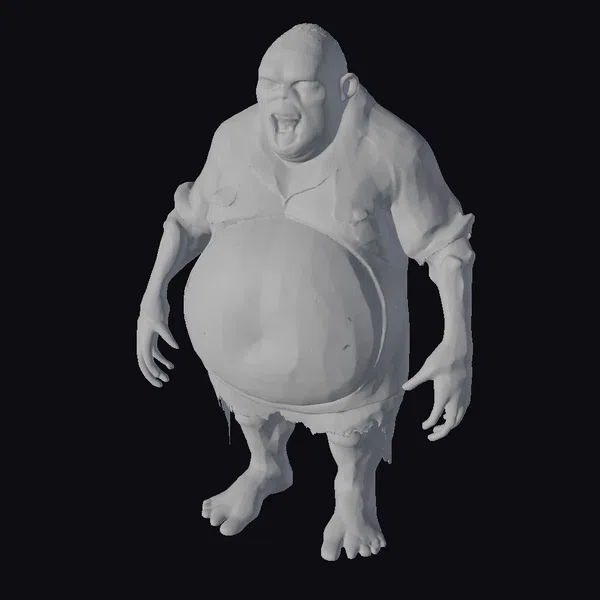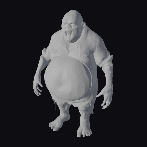 Standing tall with an unsettling presence, this hyper-realistic fat zombie exudes an aura of dread. Its bulging abdomen, a deep, pale hue with visible veins, seems to glow with an eerie light. The creature’s face is a twisted mask of horror, with sunken eyes and a wide, tooth-filled maw. Tattered, yellowish clothing clings to its frame, stained with blood and dirt. This model showcases exceptional detail, from the decaying skin texture to the sharp, bony fingers. Ideal for use in horror-themed games, animations, or VR/AR experiences, this model is sure to send shivers down the spine. Its realistic appearance makes it perfect for designers and developers seeking to create immersive, terrifying environments.