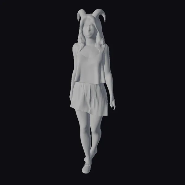 Detailed from her styled blonde hair to her elegant horns, this devil girl model exudes a sense of mystique and allure. Her slim body is dressed in a short, white dress that accentuates her figure, while her beautiful face and big eyes draw you in. The model is posed in a casual stance, giving her an approachable yet devilish charm. Her detailed features make her perfect for various projects, including games, animation, and design. The high level of detail in her face, hands, and overall anatomy ensures a lifelike appearance.