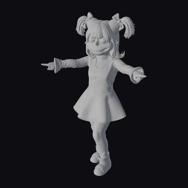 Standing out with her radiant blonde hair styled in pigtails adorned with blue bows, this cartoon girl model exudes a lively and cheerful vibe. Her bright blue dress with a flared skirt, paired with a yellow and black striped shirt and blue leggings featuring green spots, creates a visually appealing contrast of colors and patterns. The orange cuffs on her sleeves and leg bands add a pop of color, completing her playful outfit. With highly detailed textures and a dynamic pose, this model is perfect for various applications, including games, animations, virtual reality experiences, and 3D printing. Her expressive facial features and lively demeanor make her an engaging addition to any project.