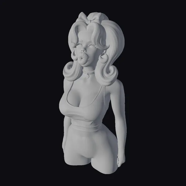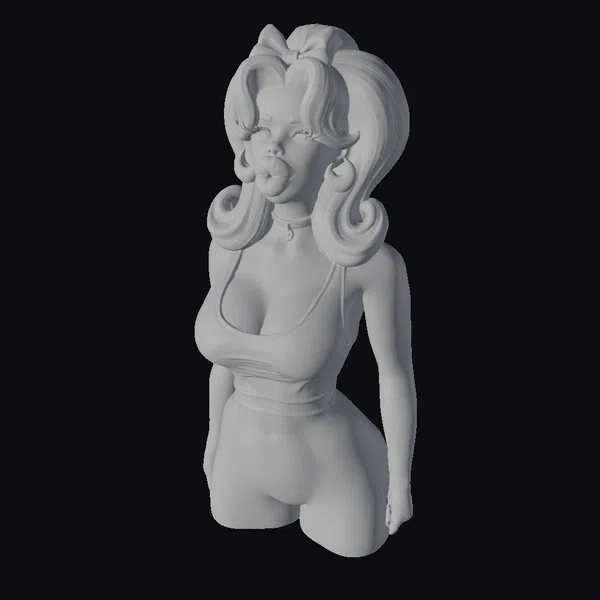 This charming cartoon doll boasts a meticulously designed appearance, from her voluminous blonde hair tied up with a pink bow to her stylish white and black heart-patterned crop top and matching shorts. Her facial features are equally detailed, with rosy cheeks, long eyelashes, and a fashionable black choker. The doll’s playful pose and the bubblegum pink bubble she’s blowing add to her whimsical charm. This model is perfect for use in animations, games, virtual reality experiences, or as a unique decorative piece. Its high level of detail and vibrant colors ensure it will capture attention and bring a touch of playfulness to any project.