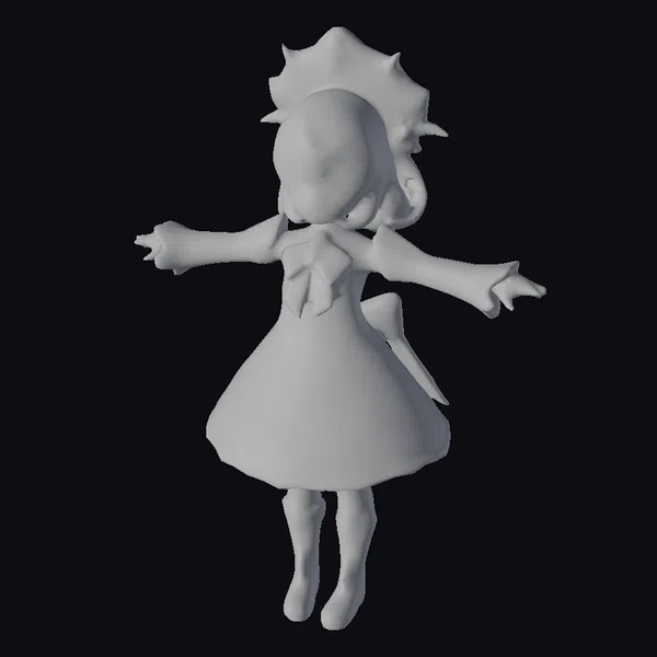 Floating dynamically in mid-air, this young mage exudes an aura of magic and wonder. Her blonde hair cascades down her back, framing her face with a fringe. Her purple eyes sparkle with an inner light, as if infused with magical energy. The white dress with gold and black accents is adorned with intricate patterns, complete with a black bow at the neckline. A majestic crown sits atop her head, adding to her regal appearance. The dress falls in soft folds to her knees, complemented by black boots with gold accents. This 3D model is perfect for games, animation, or design projects that require a touch of fantasy and magic.