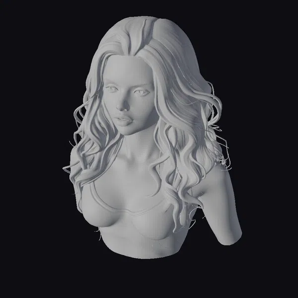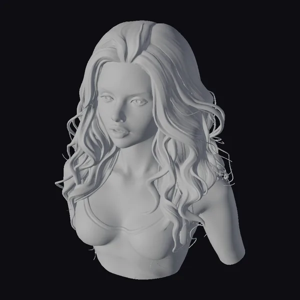 This beautifully crafted 3D bust showcases a blonde woman with a tranquil expression. Her long, wavy hair flows down her shoulders, with each strand meticulously detailed to create a realistic and visually appealing effect. Her green eyes are bright and expressive, set against a smooth, fair complexion with subtle makeup that enhances her natural beauty. The white clothing is delicately rendered, adding a sense of sophistication to the overall piece. This model is perfect for use in various applications, including games, 3D printing, virtual reality, animation, and design projects, where a realistic and captivating human character is required.