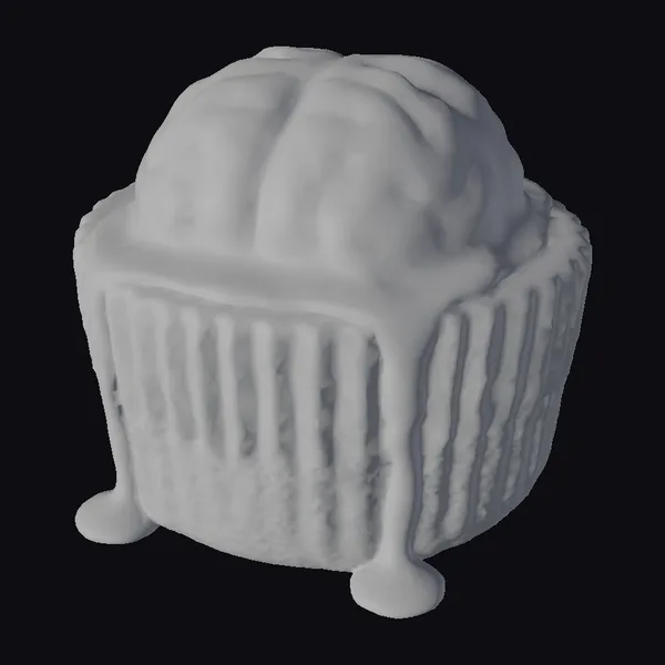 Detailed to perfection, this cupcake model showcases a chocolate base topped with a swirl of creamy white frosting and finished with a vibrant red brain that appears to be melting. The brain’s texture is intricately designed, complete with grooves and a lifelike sheen. The red icing drizzle adds a sense of movement and freshness. Ideal for use in graphic design, animation projects, or as a unique addition to digital art scenes, this model brings a touch of macabre whimsy to any project. Its detailed appearance makes it suitable for close-up shots or as a focal point in 3D environments.