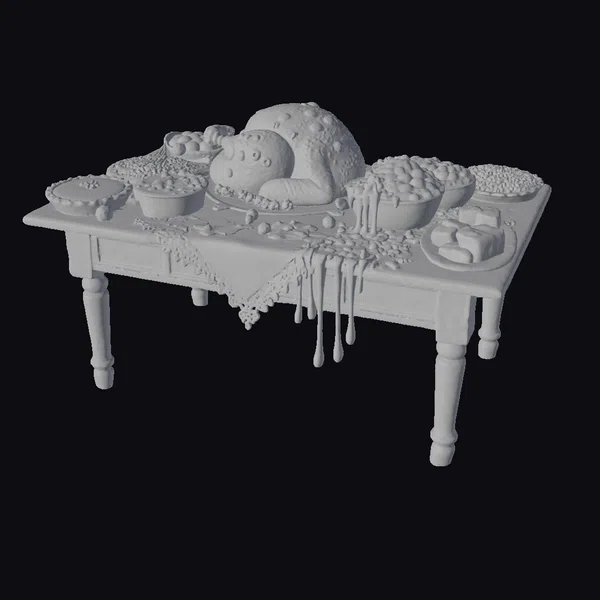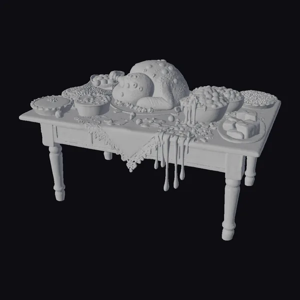 The Model “Bloody Thanksgiving Feast” is also available upon request in many other 3D formats, such as 3MF, BLEND, FBX, OBJ, USDZ and others, making it easy to integrate into your project.