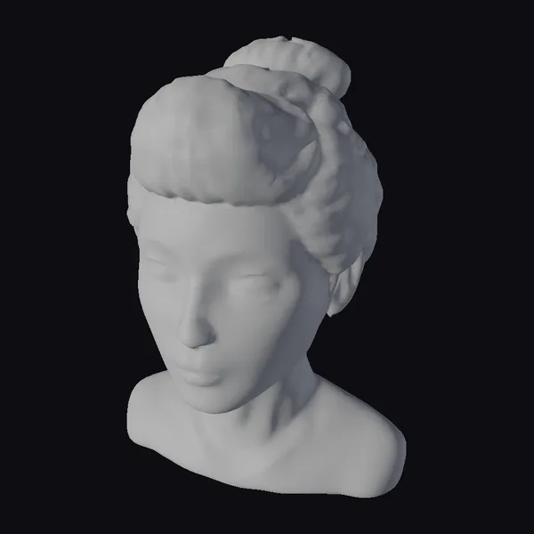 Detailed with precision, the marble bust is posed in a contemplative stance, eyes closed as if in deep thought. The floral arrangement crowning its head is a kaleidoscope of pastel colors, from soft pinks and peaches to minty greens and blues, meticulously crafted to appear as if the flowers are blooming right out of the marble. The subtle sheen on the marble and the delicate petals of the flowers catch the light, adding depth and realism to the piece. Ideal for use in games, 3D printing, VR/AR experiences, animation, and design projects, this model brings a unique blend of classic and contemporary aesthetics.
