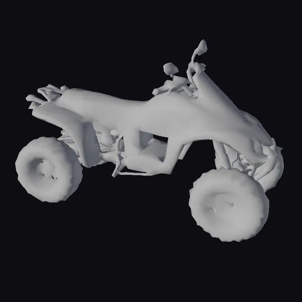 Positioned dynamically with its wheels turned slightly to the right, this blue all-terrain vehicle showcases its robust build and detailed features. The vehicle’s frame and body are rendered in a bright, electric blue, while the seat, mirrors, and accents are in sleek black. The tires are thick and rugged, designed for off-road excursions. The ATV’s design emphasizes durability and functionality, with a focus on performance and maneuverability. Ideal for use in games, simulations, or architectural visualizations where a realistic off-road vehicle is needed, this model can also serve in animation projects or 3D printing for hobbyists and enthusiasts.