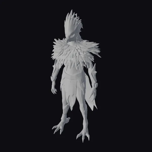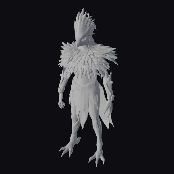 Standing proudly with its sharp talons firmly planted on the ground, the blue bird warrior’s pose showcases its impressive plumage and armor. The character’s body is a mesmerizing blend of blue feathers and sleek, metallic accents, with a golden beak adding a touch of warmth to its visage. Its arms are relaxed by its sides, with the hands ending in sharp claws, ready for battle at a moment’s notice. The armor, a combination of bronze and gold tones, complements the bird-like features, enhancing the creature’s formidable appearance. This model is perfect for projects requiring a mythical, powerful character, suitable for games, animation, and virtual reality applications.