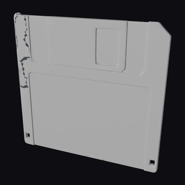 Positioned at an angle, the blue floppy disk showcases its rectangular shape with a grey label area at the top and a blank white label below. The disk’s edge appears worn, adding to its vintage charm. The blue plastic gives off a retro vibe, reminiscent of early computing technology. The blank label area invites customization. This model is perfect for designers and artists looking to add a touch of nostalgia to their projects, whether it’s for a retro-themed game, animation, or graphic design.
