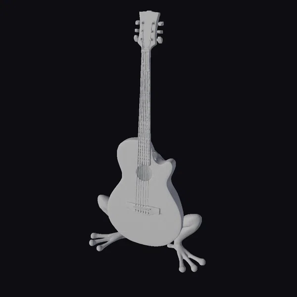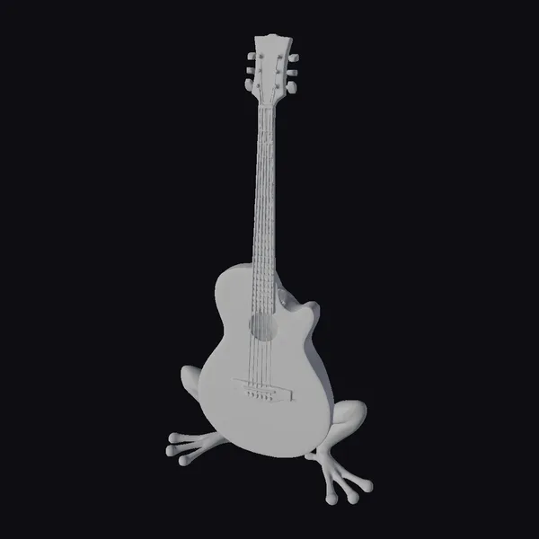 Detailed with precision, the guitar’s body morphs seamlessly into the frog’s rounded form, complete with textured legs and a neck that doubles as the frog’s stance. The blue hue captures the essence of a tropical rainforest frog. The guitar’s headstock and fretboard are meticulously designed, with silver tuning pegs and fret markers adding a touch of realism. The model’s unique design makes it perfect for games, animation, or as a decorative piece. Its stylized appearance allows for a wide range of applications, from print and VR/AR experiences to design and conceptual art projects.