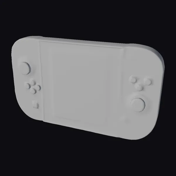Positioned at a slight angle, the console’s screen faces forward, showcasing its bright blue color. The dual joysticks, directional pad, and face buttons are meticulously detailed, with a subtle sheen that suggests a high-quality finish. The console’s smooth lines and rounded edges give it a futuristic look that’s both stylish and functional. Textures are smooth and even, with a slight gradient effect that adds depth to the model. Lighting is soft and even, highlighting the console’s contours. This model is ideal for use in game development, animation, or design projects where a realistic handheld console is needed.