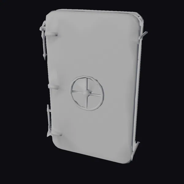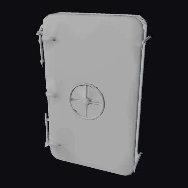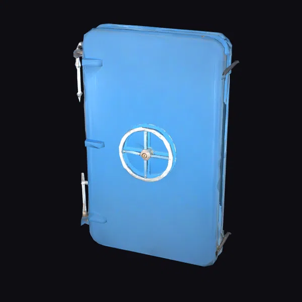 Crafted with precision, this blue metal safe door boasts a rugged texture and a prominent wheel lock at its center, flanked by sturdy metal handles on either side. The door’s rectangular shape with rounded corners exudes a sense of solid security, while the metallic blue hue suggests durability. The wheel lock, with its cross-shaped design and central knob, adds to the door’s industrial aesthetic. This model is perfect for designers and creators looking to add a touch of realism to their projects, whether it’s for a game, architectural visualization, or product design. Its detailed appearance, from the slight wear on the lock to the metallic sheen, makes it an excellent choice for those seeking an authentic look.