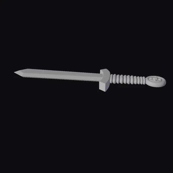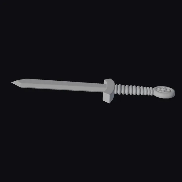 Detailed with precision, the blue plastic toy sword features a sturdy, ergonomic handle wrapped in red coils and capped with a rounded yellow pommel. The blade, a brilliant blue, tapers to a sharp point, inviting endless battles and heroic quests. Textured with subtle ridges, the hilt provides a comfortable grip for small hands. Ideal for 3D modeling projects, animation, games, or print applications, this model brings a pop of color and whimsy to any scene. Its cartoonish style and childlike appeal make it a versatile asset for creative projects.