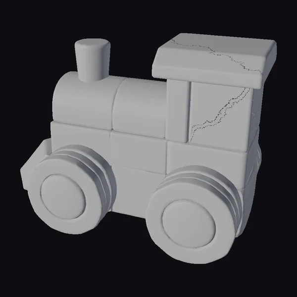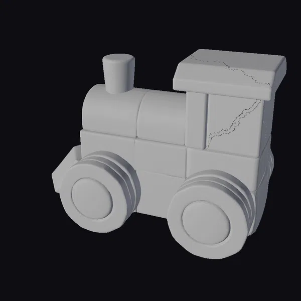 Positioned dynamically on its tracks, the blue toy train locomotive boasts a sturdy build with a blocky, abstract design. Its body is composed of rectangular shapes, painted a vibrant blue and accented with grey details such as the smokestack and roof. The black wheels and beige undercarriage add a touch of realism to this otherwise stylized model. The smooth, matte texture gives it a friendly, approachable feel. Ideal for use in children’s educational materials, games, or as a decorative piece, this model brings a sense of nostalgia and joy. Its simple yet detailed design makes it perfect for 3D printing, animation, or virtual reality applications.