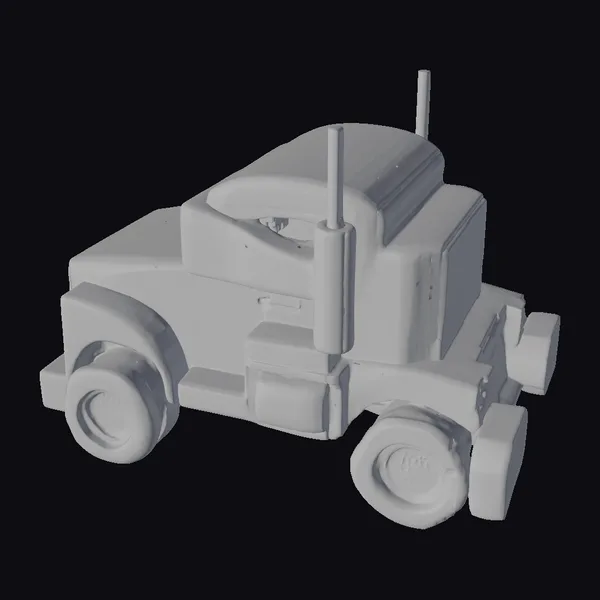 Floating dynamically on a plain background, the blue toy truck takes center stage with its eye-catching design. The truck’s body is a radiant blue, complemented by red and white details that add a playful touch. Two small antennas rise from the back, adding to its charm. The truck’s pose showcases its sturdy build and chunky tires, perfect for a child’s playroom or a creative project. The model’s simplicity and cartoonish style make it ideal for animations, games, or 3D printing. Its colorful and cheerful appearance is sure to captivate audiences of all ages.