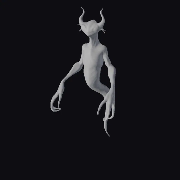 In a twisted, nightmarish realm, a blue transdimensional creature materializes, its very presence seeming to warp reality. The creature’s pose is dynamic, with one leg bent and arms outstretched, as if frozen in mid-movement. Its skin shimmers with an ethereal glow, while its eyes burn with an unearthly light. The texture of its body appears almost gelatinous, with subtle, iridescent sheens that seem to shift as it moves. The creature’s twisted limbs end in razor-sharp claws, perfect for tearing through dimensions. This 3D model would be perfect for adding a touch of dark fantasy horror to games, animations, or VR/AR experiences.
