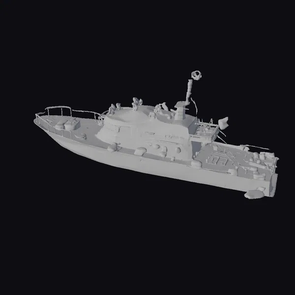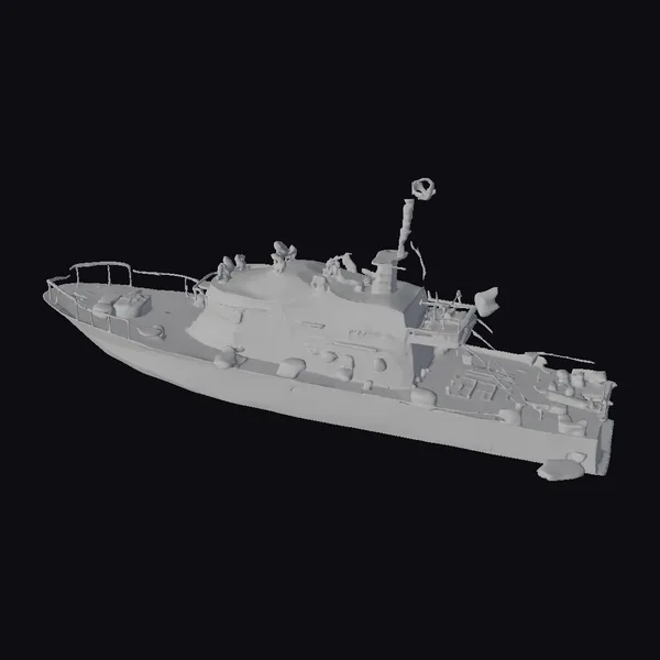 Perched atop the bow, a sleek red flag waves defiantly in the wind, adding a pop of color to the otherwise monochromatic palette. The boat’s superstructure is a masterclass in texture and detail, with subtle hints of weathering and wear. A series of small windows and portholes add depth and visual interest to the design. Whether you’re creating a maritime simulation, a naval battle scene, or simply a serene coastal landscape, this patrol boat model is sure to impress. Its realistic design and attention to detail make it an excellent choice for games, print, VR/AR, animation, and design applications.