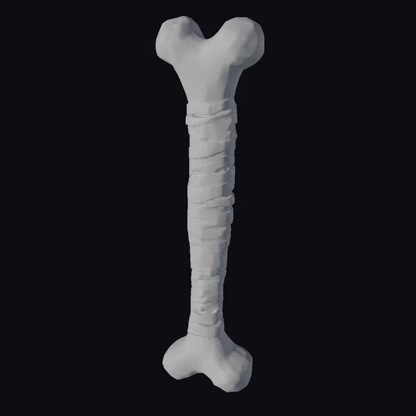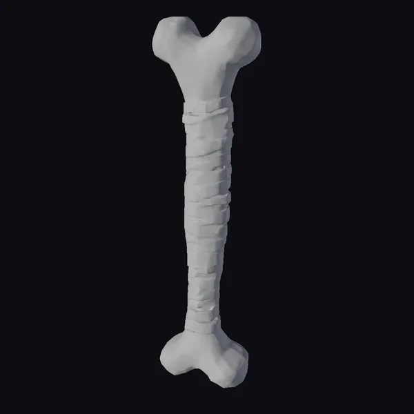 Standing tall with its unique blend of organic and wrapped elements, this bone club model showcases intricate details. The femur used as its base shows a smooth, slightly aged texture, transitioning into a tightly coiled wrapping that spirals around its length. This wrapping, with its earthy tones, adds not just visual appeal but also suggests a story of ancient craftsmanship. The model is highly detailed, with the bone’s natural texture and the wrapping’s rough, almost leathery appearance offering a lot of realism. The club’s design hints at a use-case in historical, fantasy, or survival-themed projects, where authenticity and a touch of the primal are sought after. Whether for game environments, animations, or 3D printing, this model brings a piece of ancient mystique.