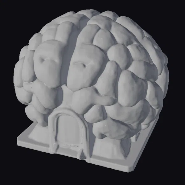 Perched on a sleek gray base, the Brainfruit Building boasts a rounded, brain-like design with a mesmerizing array of rounded, white sections. A small, arched doorway glows with a warm, yellow light, suggesting a welcoming entrance to a futuristic world. The model’s stylized, biomechanical aesthetic makes it an ideal choice for sci-fi enthusiasts, architects, and designers seeking to add a touch of otherworldly flair to their projects. Whether used in games, animation, or architectural visualizations, this model is sure to spark imagination and inspire creativity.