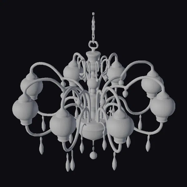 Crafted with meticulous attention to detail, this stunning chandelier features a robust brass frame with numerous curved arms, each supporting a frosted glass globe. The fixture is adorned with crystal droplets that add a touch of elegance. Soft, warm light emanates from the globes, casting a sophisticated ambiance. Ideal for games, 3D environments, architectural visualizations, or film projects seeking a classic, luxurious aesthetic.