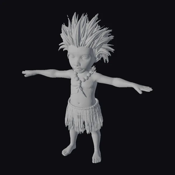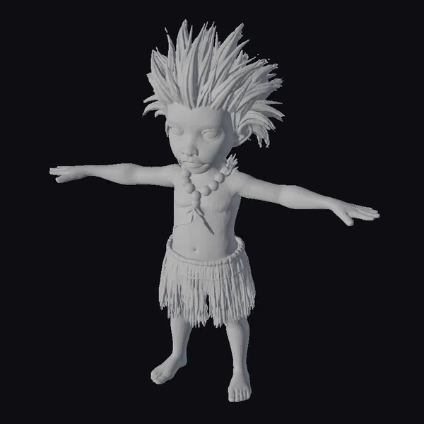 This meticulously crafted 3D model presents a detailed and lifelike representation of a young indigenous boy, inspired by Brazilian mythology. The model boasts a vibrant orange hairstyle that resembles fiery leaves, complemented by a rich brown skin tone that appears almost lifelike. He wears a traditional loincloth made from what appears to be straw or grass, along with a necklace that adds to his mystical aura. The pose, with arms outstretched, conveys a sense of openness and guardianship. The model’s textures, lighting, and proportions are finely tuned to create a compelling and immersive visual experience. Ideal for use in animations, games, virtual reality (VR) or augmented reality (AR) projects, and 3D printing, this model brings the mythological guardian of the Amazonian forest to life.