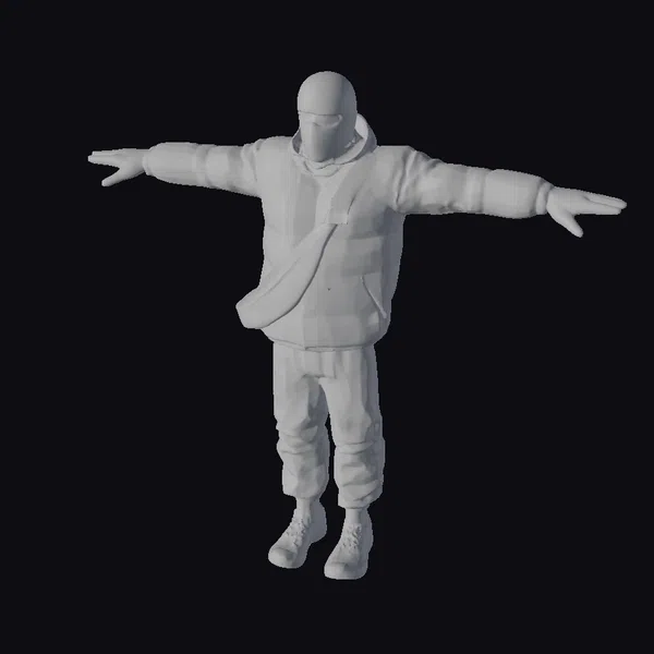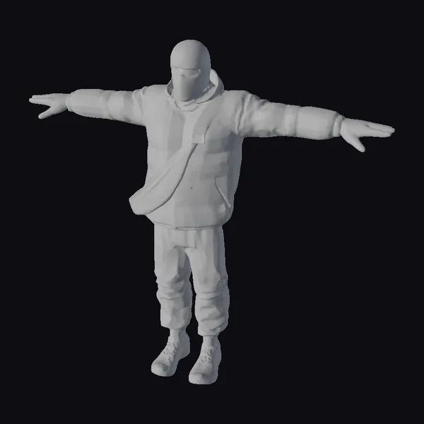 Standing tall with arms outstretched in a T-pose, this 3D model of a British roadman exudes an air of urban cool. The balaclava and puffy jacket are meticulously textured, capturing the essence of streetwear style. The model’s high detail and realistic appearance make it perfect for use in games, animations, or virtual reality experiences. The level of detail, crafted using tools like ZBrush and V-Ray, ensures a lifelike representation that can seamlessly integrate into various digital environments.