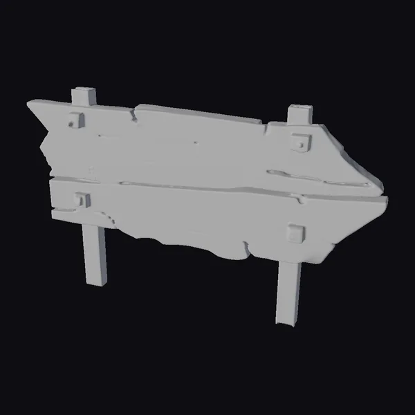 Crafted with meticulous attention to detail, this high-quality 3D model of a broken wooden signpost captures the essence of neglect and decay. The sign’s wooden slats, once nailed together with care, now hang askew, their blue paint chipped and faded. The posts that hold it upright are sturdy, yet worn smooth in places, suggesting years of exposure to the elements. This model is perfect for adding a touch of realism to games, animations, or architectural visualizations. Its weathered appearance and peeling paint make it an excellent choice for projects requiring a sense of age and neglect.