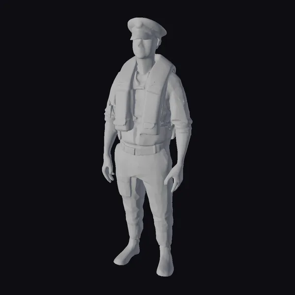 Rendered in exquisite detail, the bronze statue of a US Coast Guard Seaman captures the essence of military precision and readiness. The figure stands upright on both legs, donning a life jacket over a crisp uniform adorned with patches, and a cap that adds to the authenticity of the portrayal. The bronze finish lends a warm, earthy tone to the piece, highlighting the textures of the uniform, the ruggedness of the life jacket, and the determined expression on the seaman’s face. This statue is perfect for projects requiring a touch of realism and a strong narrative element, such as historical dramas, educational materials, or memorials. Its detailed craftsmanship makes it an excellent choice for games, print media, VR/AR experiences, animations, and design projects seeking to incorporate realistic military figures.