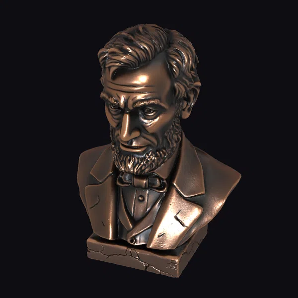 Crafted with meticulous attention to detail, this bronze bust presents a compelling portrait of a historical figure, rendered in a realistic style that commands attention. The subject’s facial features are set in a determined expression, with deep lines etched into his forehead and around his eyes, conveying a sense of gravitas and leadership. His hair is depicted in textured, flowing waves, while his attire is detailed with precision, from the folds of his jacket to the bow tie at his neck. The bronze finish adds a warm, rich tone to the piece, suggesting a sense of tradition and timelessness. Standing on a sturdy base, this bust is poised to become a focal point in any setting, whether it’s a study, office, or gallery. Its level of detail and realism makes it an excellent choice for projects requiring a high degree of authenticity, such as historical animations, educational materials, or architectural visualizations.