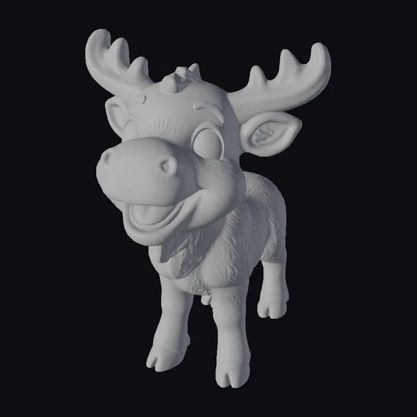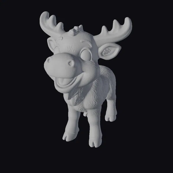 This delightful baby moose figurine stands proudly with its legs slightly apart, showcasing its detailed brown fur and shiny hooves. The large, white antlers add a touch of youthfulness, complementing its wide, cheerful grin and vibrant blue eyes. The moose’s pose and expression evoke a sense of playful curiosity, making it perfect for various creative projects. Its cartoonish style allows it to blend seamlessly into animated scenes, games, or even 3D printed models. The moose’s joyful demeanor and detailed texture make it an excellent choice for designers looking to add a whimsical touch to their work.