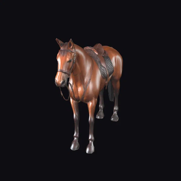 Rendered with meticulous attention to detail, the horse boasts a chestnut brown coat with a subtle sheen, highlighting its muscular physique. The saddle and bridle are intricately designed, adding a touch of authenticity to the model. Positioned in a neutral stance, the horse exudes a sense of calm and strength. Its application spans various fields including game development, animation projects, and architectural visualization, where a realistic equine model is required. The model’s detailed textures and lifelike proportions make it an excellent choice for creators seeking to add a touch of realism to their work.