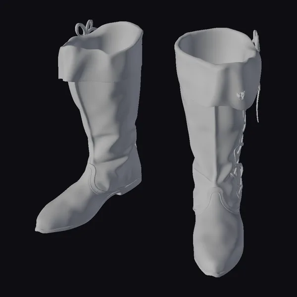 Crafted with meticulous attention to detail, these brown leather knee-high boots are presented in a dynamic pose, showcasing their intricate design. The boots feature a rich, brown leather texture with visible folds and creases that suggest a high level of realism. A gold zipper runs along the inside of each boot, complemented by gold buckles and laces that add a touch of luxury. The boots are set against a clean white background, allowing the viewer to focus on the detailed textures and reflections on the leather. The boots are well-suited for use in games, 3D printing, VR/AR experiences, animation projects, and design visualizations, offering a versatile asset for various applications.