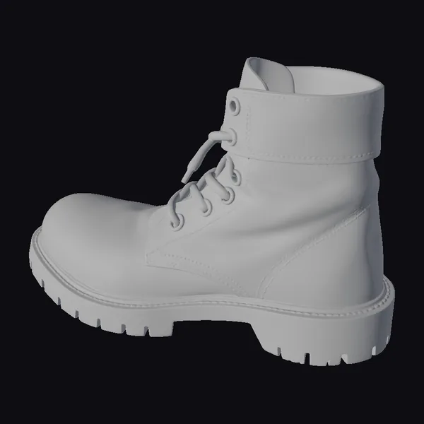 Crafted with precision, this brown leather work boot boasts a rich, earthy tone and a robust design. The boot features a high ankle collar, multiple eyelets for lacing, and a thick, rugged sole perfect for withstanding demanding environments. The leather material exhibits a natural texture, complete with subtle creases and stitching details that add to its authenticity. Ideal for use in games, 3D animations, or architectural visualizations, this model brings a touch of realism to any project. Its detailed design and realistic proportions make it suitable for close-up shots or as part of a larger scene.